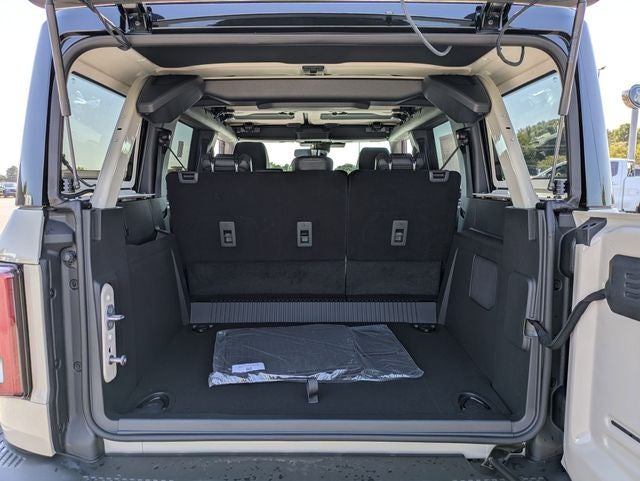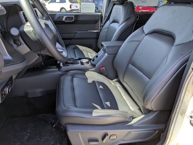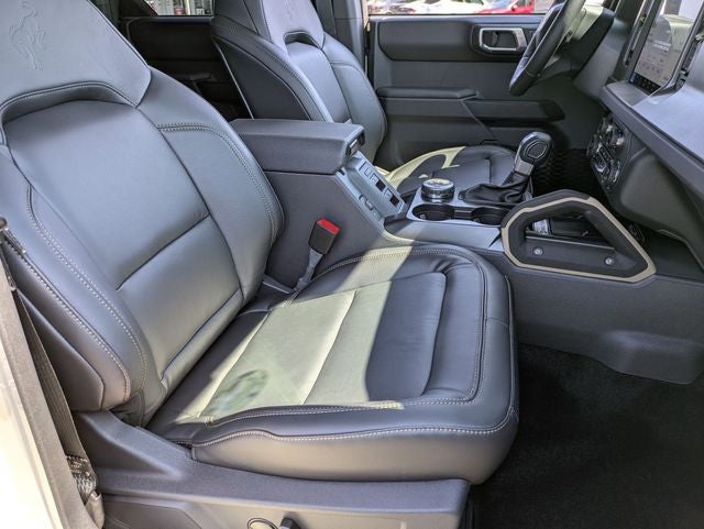 This Bronco Badlands is nicely equipped with Equipment Group 334A Lux Package (2-Door Intelligent Access w/Lock/Unlock, 360-Degree Camera, Adaptive Cruise Control, Ambient Footwell Lighting, Connected Navigation, Dr & Pass Illuminated Sliding Visor Vanity Mirrors, Dual Smart Charging USB Ports, Dual-Zone Electronic Automatic Temperature Control, Evasive Steering Assist, Front Parking Sensors, Front Row Heated Seats, Information on Demand Panel, Power Outlet - Back Side of Center Floor Console, Radio: B&O Sound System by Bang & Olufsen, Rear Parking Sensors, Sideview Mirrors, and Universal Garage Door Opener), 4-Wheel Disc Brakes, 4.7 Axle Ratio, 7 Speakers, ABS brakes, Air Conditioning, Alloy wheels, AM/FM radio: SiriusXM with 360L, AM/FM Stereo, Auto High-Beam Headlamps, Auto High-beam Headlights, Auto-dimming Rear-View mirror, BLIS Blind Spot Information System, Brake assist, Compass, Delay-off headlights, Driver door bin, Driver vanity mirror, Dual front impact airbags, Dual front side impact airbags, Electronic Stability Control, Emergency communication system: 911 Assist, Exterior Parking Camera Rear, Front anti-roll bar, Front Bucket Seats, Front Center Armrest, Front fog lights, Front License Plate Bracket, Front reading lights, Front wheel independent suspension, Fully automatic headlights, Hard Top Sound Deadening Headliner, Heated door mirrors, Heated front seats, Heated steering wheel, Illuminated entry, Integrated roll-over protection, Lane-Keeping System, Leather Shift Knob, Leather-Trimmed/Vinyl Bucket Seats, Low tire pressure warning, Marine Grade Vinyl Heated Bucket Seats, Occupant sensing airbag, Outside temperature display, Overhead airbag, Overhead console, Panic alarm, Passenger door bin, Passenger vanity mirror, Power door mirrors, Power steering, Power windows, Pre-Collision Assist w/Automatic Emergency Braking, Radio data system, Rear-View Camera, Rear-Window Defroster & Washer, Remote keyless entry, Security system, Shadow Black Painted Hard Top, SiriusXM w/360L, Speed control, Split folding rear seat, Steering wheel mounted audio controls, SYNC 4, Tachometer, Telescoping steering wheel, Tilt steering wheel, Traction control, Trip computer, Variably intermittent wipers, Voltmeter, and Wheels: 17 Carbonized Gray-Painted Aluminum.