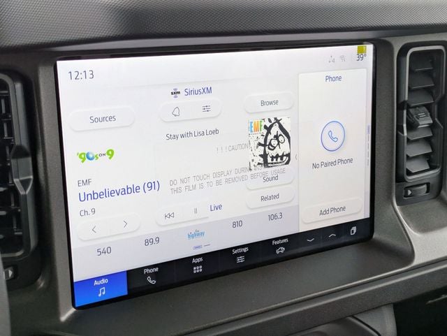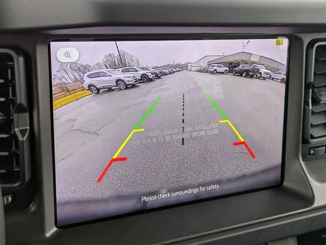 This Bronco is nicely equipped with Equipment Group 101A, 4-Wheel Disc Brakes, 4.46 Axle Ratio, 7 Speakers, ABS brakes, Air Conditioning, AM/FM radio: SiriusXM with 360L, AM/FM Stereo, Auto High-beam Headlights, Brake assist, Cloth Bucket Seats, Compass, Delay-off headlights, Driver door bin, Driver vanity mirror, Dual front impact airbags, Dual front side impact airbags, Electronic Stability Control, Emergency communication system: 911 Assist, Exterior Parking Camera Rear, Front anti-roll bar, Front Bucket Seats, Front Center Armrest, Front License Plate Bracket, Front reading lights, Front wheel independent suspension, Fully automatic headlights, Heated door mirrors, Illuminated entry, Integrated roll-over protection, Low tire pressure warning, Occupant sensing airbag, Outside temperature display, Overhead airbag, Overhead console, Panic alarm, Passenger door bin, Passenger vanity mirror, Power door mirrors, Power steering, Power windows, Radio data system, Remote keyless entry, Security system, SiriusXM w/360L, Speed control, Split folding rear seat, Steering wheel mounted audio controls, SYNC 4, Tachometer, Telescoping steering wheel, Tilt steering wheel, Traction control, Trip computer, Variably intermittent wipers, and Wheels: 16 Bright Polished Silver-Painted Steel.