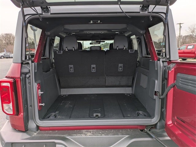 This Bronco Big Bend is nicely equipped with Equipment Group 222A Mid Package (2-Door Intelligent Access w/Lock/Unlock, Ambient Footwell Lighting, Connected Navigation, Dr & Pass Illuminated Sliding Visor Vanity Mirrors, Dual Smart Charging USB Ports, Dual-Zone Electronic Automatic Temperature Control, Front Row Heated Seats, Power Outlet - Back Side of Center Floor Console, and Rear Parking Sensors), 4-Wheel Disc Brakes, 4.46 Axle Ratio, 7 Speakers, ABS brakes, Air Conditioning, Alloy wheels, AM/FM radio: SiriusXM with 360L, AM/FM Stereo, Auto High-Beam Headlamps, Auto High-beam Headlights, BLIS Blind Spot Information System, Brake assist, Carbonized Gray Molded-In-Color Hard Top, Cloth Bucket Seats, Compass, Delay-off headlights, Door Storage Bags, Driver door bin, Driver vanity mirror, Dual front impact airbags, Dual front side impact airbags, Electronic Stability Control, Emergency communication system: 911 Assist, Exterior Parking Camera Rear, Front & Rear Floor Liners w/o Carpet Floor Mats, Front anti-roll bar, Front Bucket Seats, Front Center Armrest, Front License Plate Bracket, Front reading lights, Front wheel independent suspension, Fully automatic headlights, Hard Top Sound Deadening Headliner, Heated door mirrors, Illuminated entry, Integrated roll-over protection, Internet access capable: FordPass Connect, Lane-Keeping System, Leather Shift Knob, Low tire pressure warning, Occupant sensing airbag, Outside temperature display, Overhead airbag, Overhead console, Panic alarm, Passenger door bin, Passenger vanity mirror, Power door mirrors, Power steering, Power windows, Pre-Collision Assist w/Automatic Emergency Braking, Radio data system, Rear-View Camera, Rear-Window Defroster & Washer, Remote keyless entry, Security system, Side Step, SiriusXM w/360L, Speed control, Split folding rear seat, Steering wheel mounted audio controls, SYNC 4, Tachometer, Telescoping steering wheel, Tilt steering wheel, Traction control, Trip computer, Variably intermittent wipers, and Wheels: 17 Carbonized Gray-Painted Aluminum.