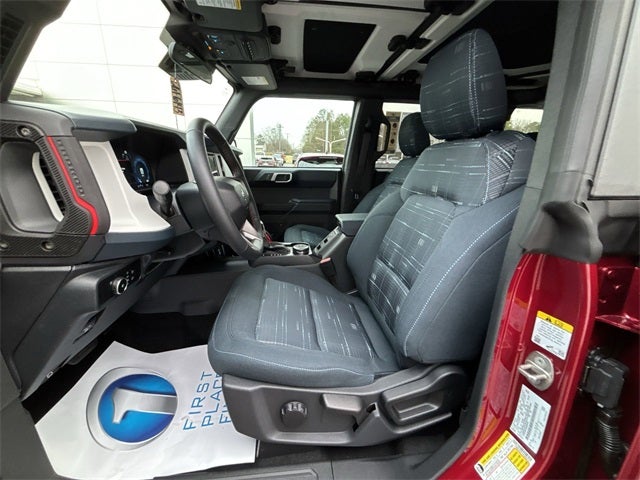 2025 Ford Bronco Heritage Edition 4-Wheel Disc Brakes, 7 Speakers, ABS brakes, Air Conditioning, Alloy wheels, AM/FM radio: SiriusXM with 360L, AM/FM Stereo, Auto High-beam Headlights, Auto-dimming Rear-View mirror, Automatic temperature control, Brake assist, Compass, Connected Navigation, Convertible HardTop, Convertible roof lining, Delay-off headlights, Driver door bin, Driver vanity mirror, Dual front impact airbags, Dual front side impact airbags, Electronic Stability Control, Emergency communication system: 911 Assist, Exterior Parking Camera Rear, Front anti-roll bar, Front Bucket Seats, Front Center Armrest, Front dual zone A/C, Front fog lights, Front reading lights, Front wheel independent suspension, Fully automatic headlights, Glass rear window, Heated door mirrors, Heated front seats, Heated steering wheel, Illuminated entry, Integrated roll-over protection, Leather Shift Knob, Low tire pressure warning, Navigation system: Connected Navigation, Occupant sensing airbag, Outside temperature display, Overhead airbag, Overhead console, Panic alarm, Passenger door bin, Passenger vanity mirror, Plaid Cloth Front Heated Bucket Seats, Power door mirrors, Power steering, Power windows, Radio data system, Rear window defroster, Rear window wiper, Remote keyless entry, Security system, SiriusXM w/360L, Speed control, Split folding rear seat, Steering wheel mounted audio controls, SYNC 4, Tachometer, Telescoping steering wheel, Tilt steering wheel, Traction control, Trip computer, Variably intermittent wipers, Wheels: 17 Unique White. Price includes: $2000 - Jeep Competitive Conquest Bonus Cash. Exp. 03/31/2026 $2500 - Retail Customer Cash. Exp. 03/31/2026