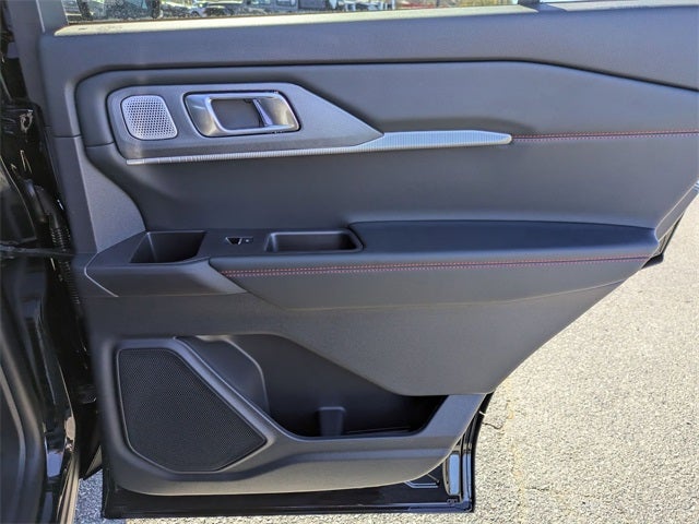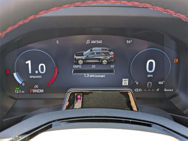 This Explorer ST is nicely equipped with Equipment Group 400A Standard Package (Wheels: 21 Magnetite-Painted Aluminum), Sun and Sound Package (Radio: B&O Sound System by Bang & Olufsen and Remote Control Front Windows), 4WD, 10 Speakers, 3rd row seats: bench, 4-Wheel Disc Brakes, ABS brakes, Air Conditioning, Alloy wheels, AM/FM radio: SiriusXM with 360L, Apple CarPlay/Android Auto, Auto High-beam Headlights, Auto-dimming door mirrors, Auto-dimming Rear-View mirror, Automatic temperature control, BlueCruise Equipped (1-Year + 90-Day Plan), Brake assist, Bumpers: body-color, Compass, Delay-off headlights, Driver door bin, Driver vanity mirror, Dual front impact airbags, Dual front side impact airbags, Electronic Stability Control, Emergency communication system: 911 Assist, Exterior Parking Camera Rear, Four wheel independent suspension, Front anti-roll bar, Front Bucket Seats, Front Center Armrest, Front dual zone A/C, Front fog lights, Front License Plate Bracket, Front reading lights, Fully automatic headlights, Garage door transmitter, Heated door mirrors, Heated front seats, Heated rear seats, Heated steering wheel, Illuminated entry, Knee airbag, Leather steering wheel, Low tire pressure warning, Memory seat, Navigation System, Occupant sensing airbag, Outside temperature display, Overhead airbag, Overhead console, Panic alarm, Passenger door bin, Passenger vanity mirror, Power door mirrors, Power driver seat, Power Liftgate, Power passenger seat, Power steering, Power windows, Rain sensing wipers, Rear air conditioning, Rear anti-roll bar, Rear reading lights, Rear window defroster, Rear window wiper, Remote keyless entry, Security system, Speed control, Speed-sensing steering, Speed-Sensitive Wipers, Split folding rear seat, Spoiler, Sport steering wheel, Steering wheel mounted audio controls, Tachometer, Telescoping steering wheel, Tilt steering wheel, Traction control, Trip computer, Turn signal indicator mirrors, Variably intermittent wipers, and Ventilated front seats.