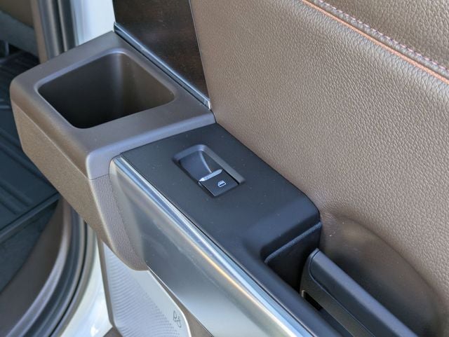 This F-350 SuperDuty King Ranch is nicely equipped with 5th Wheel/Gooseneck Hitch Prep Package, Chrome Package (Chrome Door Handles, Chrome Exhaust Tip, Unique Chrome Mirror Caps, and Wheels: 20 Chrome PVD Aluminum), Ford Connectivity Package (1-Year Included), FX4 Off-Road Package (Hill Descent Control, Off-Road Specifically Tuned Shock Absorbers, and Unique FX4 Off-Road Box Decal), Internet access capable: 5G Modem - Ford Connectivity Package, 4WD, 14 Speakers, 4-Wheel Disc Brakes, 410 Amp Dual Alternators, ABS brakes, Adjustable pedals, Air Conditioning, All-Weather Floor Mats, Alloy wheels, AM/FM radio: SiriusXM with 360L, Auto High-beam Headlights, Auto tilt-away steering wheel, Auto-dimming Rear-View mirror, Automatic temperature control, Brake assist, Compass, Delay-off headlights, Driver door bin, Driver vanity mirror, Dual front impact airbags, Dual front side impact airbags, Electronic Stability Control, Emergency communication system: SYNC 4 911 Assist, Engine Block Heater, Flow-Through Console, Front anti-roll bar, Front Bucket Seats, Front Center Armrest, Front dual zone A/C, Front fog lights, Front reading lights, Fully automatic headlights, Garage door transmitter, Heads-Up Display, Heated door mirrors, Heated front seats, Heated rear seats, Heated steering wheel, Illuminated entry, Leather steering wheel, LED Roof Clearance Lights, Low tire pressure warning, Memory seat, Navigation system: Connected Navigation, Outside temperature display, Overhead airbag, Overhead console, Panic alarm, Passenger door bin, Passenger vanity mirror, Pedal memory, Power door mirrors, Power driver seat, Power passenger seat, Power steering, Power windows, Pro Power Onboard - 2kW, Radio: B&O Unleashed Sound System by Bang & Olufsen, Rain sensing wipers, Rapid-Heat Supplemental Cab Heater, Rear reading lights, Rear seat center armrest, Rear step bumper, Rear window defroster, Remote keyless entry, Security system, Speed control, Split folding rear seat, Steering wheel memory, Steering wheel mounted A/C controls, Steering wheel mounted audio controls, Tachometer, Telescoping steering wheel, Tilt steering wheel, Traction control, Trip computer, Turn signal indicator mirrors, Twin Panel Power Moonroof, Unique King Ranch Leather 40/Console/40 Seats, Upfitter Switches (6), Variably intermittent wipers, Ventilated front seats, and Wheels: 20 Bright Machined Aluminum.