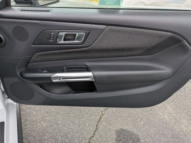 This Mustang EcoBoost is nicely equipped with Ford Connectivity Package (one-Time Purchase - 7 Years), Mustang Nite Pony Package (Black Front and Rear Pony Badges, Black Mirror Caps, Painted Black Roof, and Wheels: 19 x 8.5 Ebony Black-Painted Aluminum), 1st Row Carpeted Black Floor Mats, 4-Wheel Disc Brakes, ABS brakes, Air Conditioning, Alloy wheels, AM/FM Stereo, Auto High-beam Headlights, Automatic temperature control, Brake assist, Bumpers: body-color, Compass, Delay-off headlights, Driver door bin, Driver vanity mirror, Dual front impact airbags, Dual front side impact airbags, Electronic Stability Control, Emergency communication system: 911 Assist, Exterior Parking Camera Rear, Four wheel independent suspension, Front anti-roll bar, Front Bucket Seats, Front Center Armrest, Front dual zone A/C, Front reading lights, Fully automatic headlights, Illuminated entry, Knee airbag, Leather Shift Knob, Low tire pressure warning, Occupant sensing airbag, Outside temperature display, Overhead airbag, Overhead console, Panic alarm, Passenger door bin, Passenger vanity mirror, Power door mirrors, Power steering, Power windows, Radio data system, Rain sensing wipers, Rear anti-roll bar, Rear Parking Sensors, Rear window defroster, Remote keyless entry, Speed control, Speed-sensing steering, Speed-Sensitive Wipers, Split folding rear seat, Sport steering wheel, Steering wheel mounted audio controls, SYNC 4, Tachometer, Telescoping steering wheel, Tilt steering wheel, Traction control, Trip computer, Variably intermittent wipers, Voltmeter, and Wheels: 18 x 8 Painted Shadow Silver Cast Aluminum.