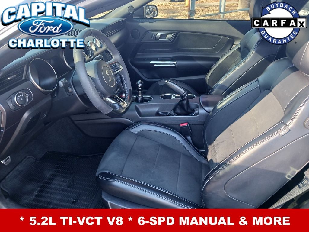 **NAVIGATION**, **DUAL ZONE TEMP CONTROL**, **HEATED & COOLED LEATHER SEATS**, **SYNC 3**, **BACKUP CAMERA**, **INTELLIGENT ACCESS w. PUSH BUTTON START, **TRITON PROTECT CAR CARE SYSTEM**, **TRITON PROTECT SILENT SECURITY THEFT DETERRENT SYSTEM**, **FULLY INSPECTED BY CERTIFIED TECHNICIANS**, 6 Speakers, AM/FM Stereo/Single CD Player, Delay-off headlights, Emergency communication system: 911 Assist, Fully automatic headlights, GT350 Equipment Group 900A, High-Intensity Discharge Headlights, Low Tire Pressure Warning, Over-the-Top Racing Stripe, Speed-Sensitive Wipers, Telescoping Steering Wheel, Tilt Steering Wheel, Variably intermittent wipers.