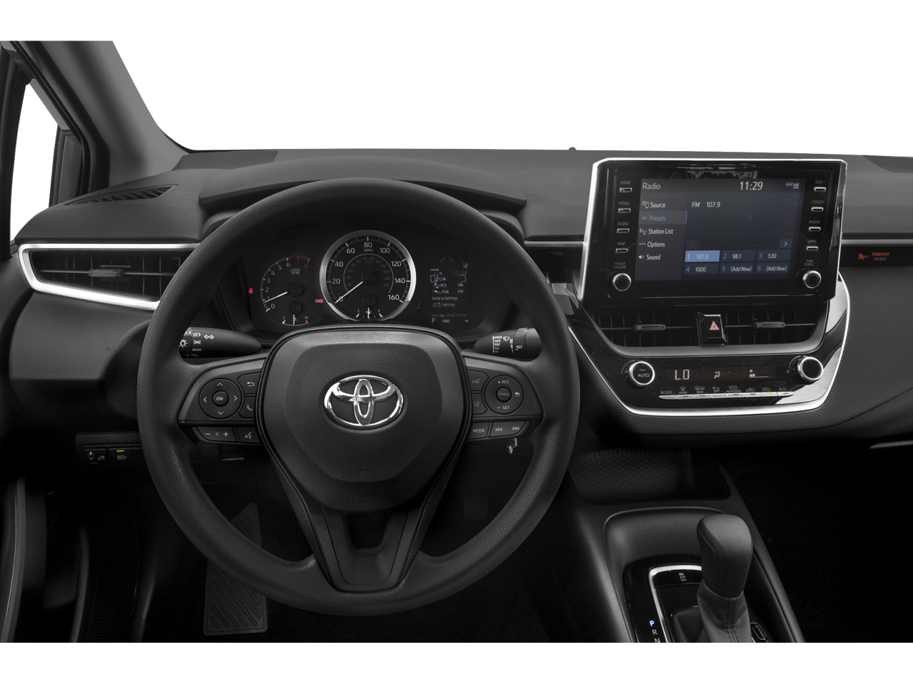 The Corolla LE's striking black exterior exudes a timeless elegance, while the well-appointed interior features premium fabric seat trim and a host of advanced technologies, including:
