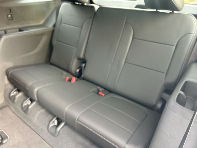 3.49 Axle Ratio, 3rd row seats: split-bench, 4-Wheel Disc Brakes, 6 Speakers, 6-Speaker Audio System Feature, 6-Way Power Front Passenger Seat, 8-Way Power Driver Seat Adjuster, ABS brakes, Air Conditioning, AM/FM radio: SiriusXM with 360L, Apple CarPlay/Android Auto, Auto High-beam Headlights, Automatic temperature control, Black Roof Rails, Brake assist, Bumpers: body-color, Compass, Delay-off headlights, Driver door bin, Driver vanity mirror, Dual front impact airbags, Dual front side impact airbags, Electronic Stability Control, Emergency communication system, Exterior Parking Camera Rear, Four wheel independent suspension, Front anti-roll bar, Front Bucket Seats, Front Center Armrest, Front dual zone A/C, Front License Plate Bracket Mounting Package, Front Passenger 2-Way Power Lumbar, Front reading lights, Fully automatic headlights, Garage door transmitter, Heated door mirrors, Heated Driver & Front Passenger Seats, Heated front seats, Heated steering wheel, Illuminated entry, Leather steering wheel, Leather-Appointed Seat Trim, Low tire pressure warning, Occupant sensing airbag, Outside temperature display, Overhead airbag, Overhead console, Panic alarm, Passenger door bin, Passenger vanity mirror, Power door mirrors, Power Driver Lumbar Control, Power driver seat, Power Liftgate, Power passenger seat, Power steering, Power windows, Preferred Equipment Group 3LT, Premium audio system: Chevrolet Infotainment 3 Plus, Radio data system, Radio: Chevrolet Infotainment 3 Plus System, Rear air conditioning, Rear anti-roll bar, Rear reading lights, Rear window defroster, Rear window wiper, Remote keyless entry, Security system, Speed control, Speed-sensing steering, Spoiler, Steering wheel mounted audio controls, Tachometer, Telescoping steering wheel, Tilt steering wheel, Traction control, Trip computer, Turn signal indicator mirrors, Variably intermittent wipers, Voltmeter, Wheels: 18 Bright Silver-Painted Aluminum. 18/26 City/Highway MPG